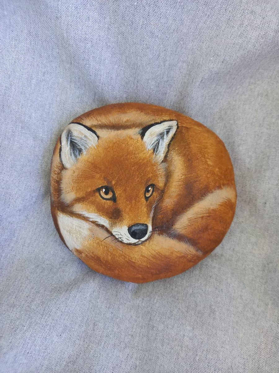 Akryyliväreillä luonnonkiveen maalattu kettu