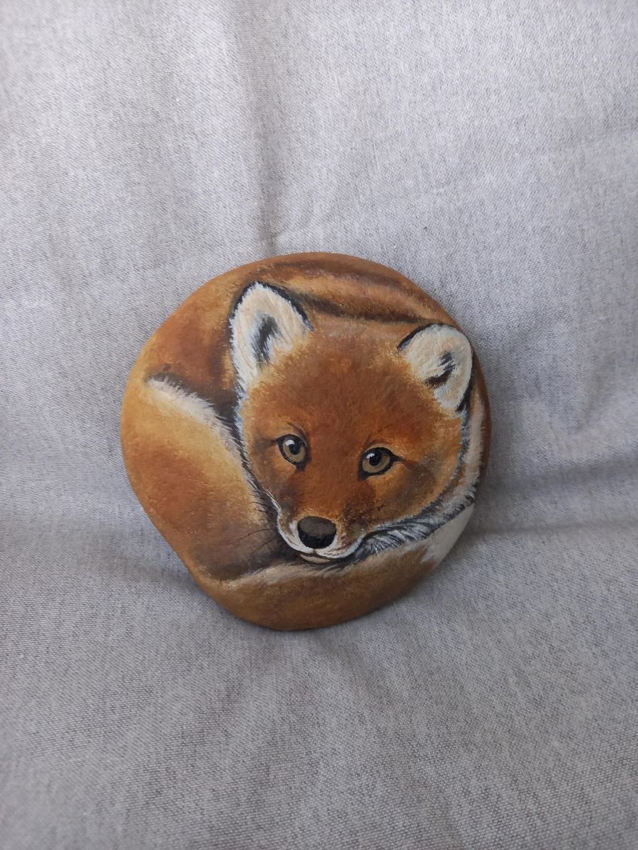 Akryyliväreillä luonnonkiveen maalattu kettu